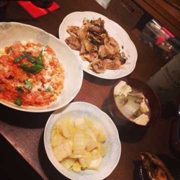 無農薬トマトジュース丸々一本作ったトマトリゾット。