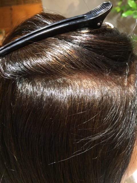 中のほうは、前のカラーが抜けて明るいのでそこもしっかり染めていきたいと思います。