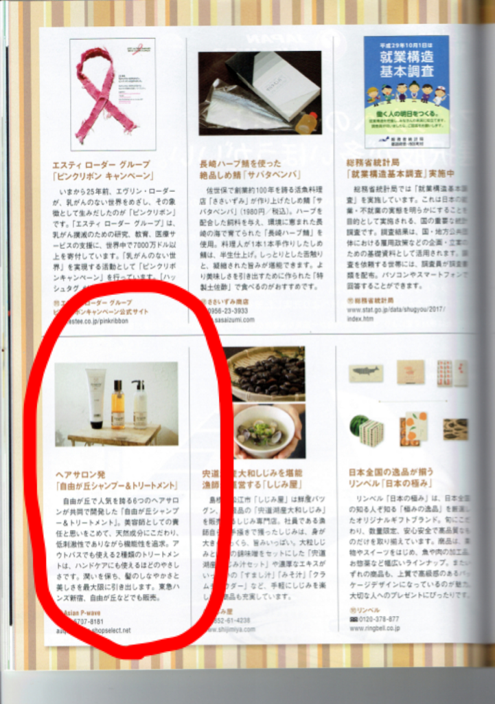 JSSで作り上げた自由が丘シャンプー・トリートメントシリーズが空の上で紹介されます!