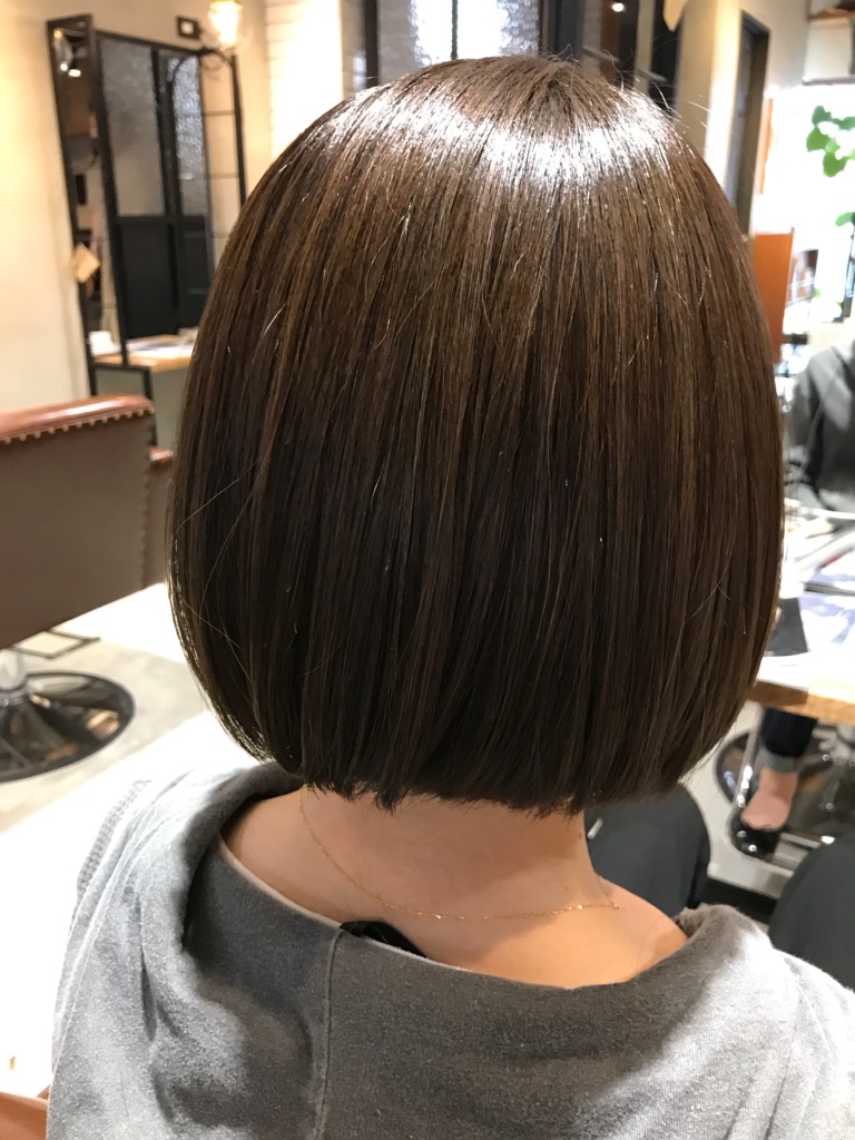 こちらのボブには細いハイライトが全体に入っていまして、