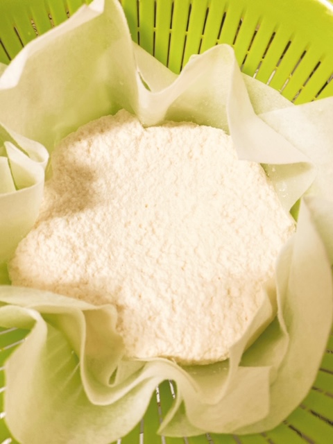 温めて混ぜて分離した牛乳をこしたものがこんな感じ☆
