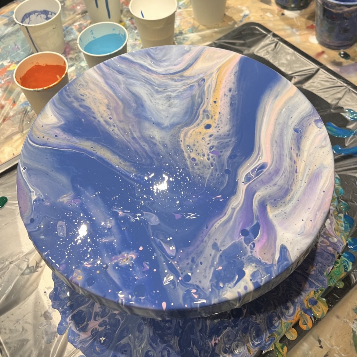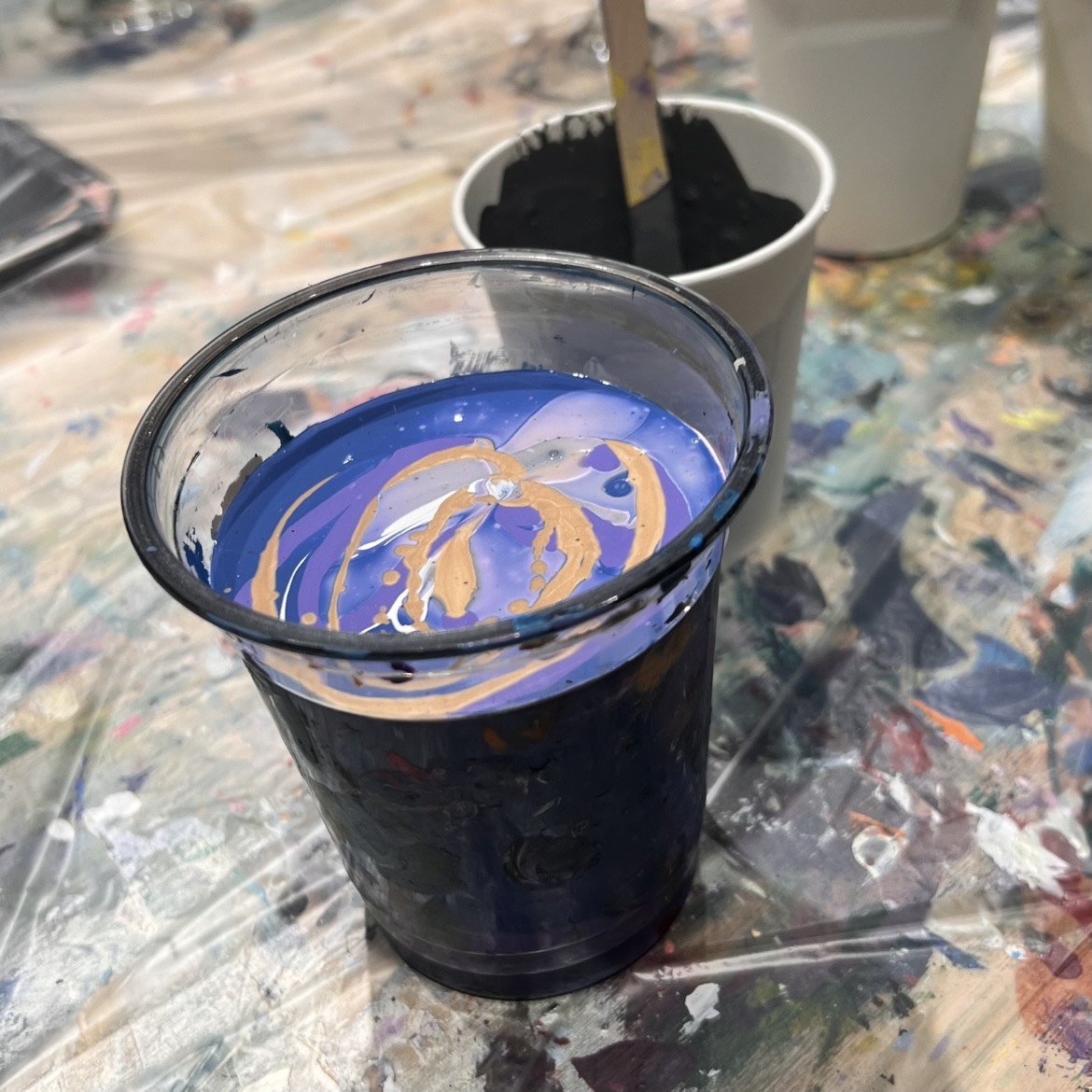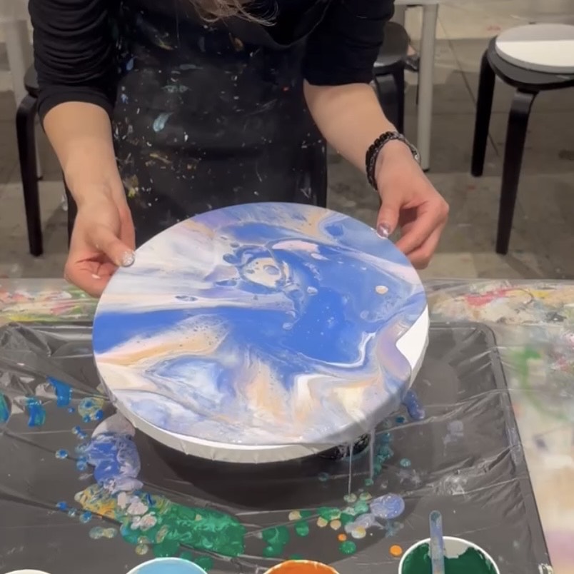 日にち、時間によって教えてもらえる作品が違うのですが私は前にSNSで見た事がありずっとやってみたかった垂らしこみのアートを狙って行って来ました!!
