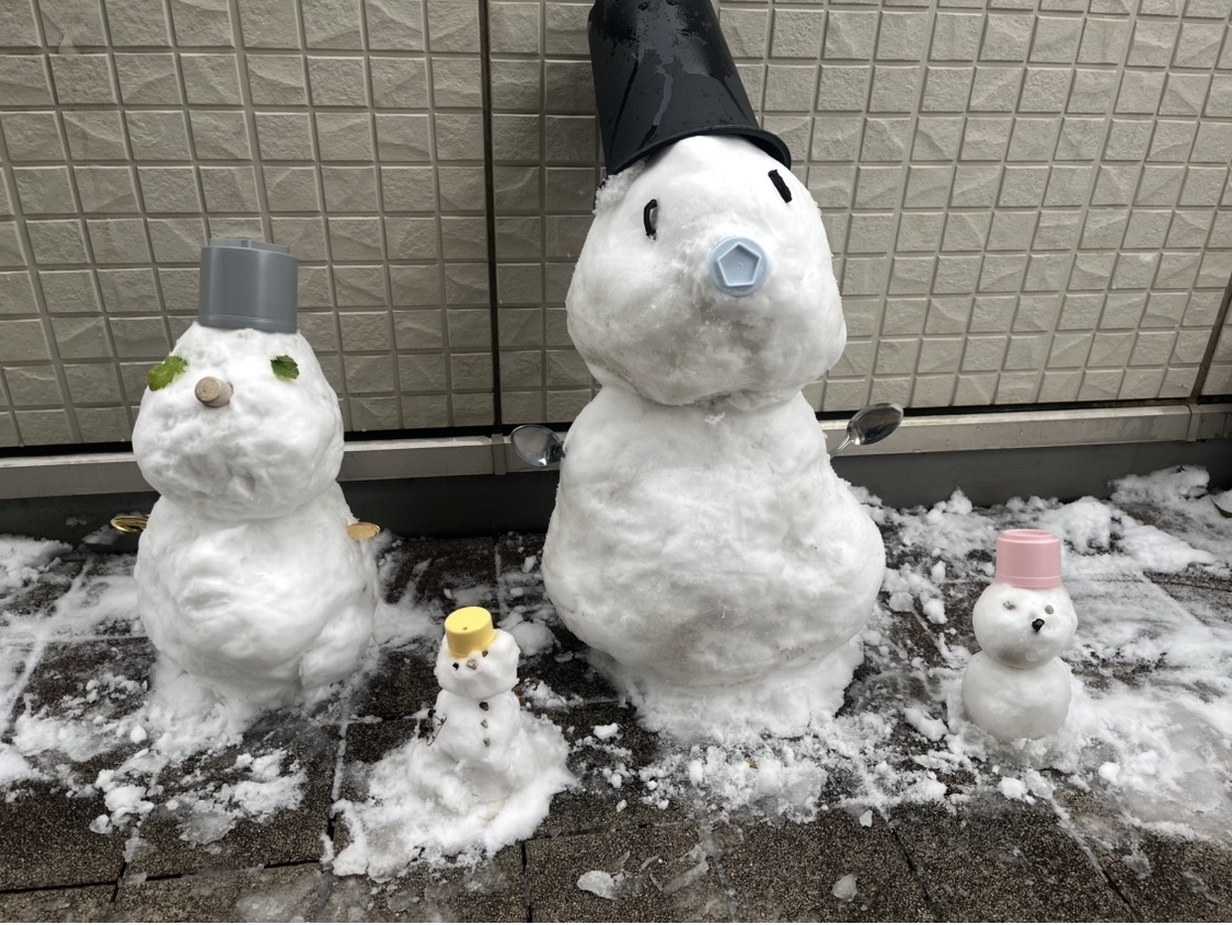 ということでバルコニーの雪かきがてら4体の雪だるまが完成しました♪